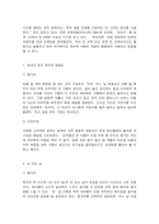 목차 I. 서론 II. 본론 1.화내지 말고 예쁘게 말해요 2.칫솔맨 도와줘요 3.팥죽할멈과 호랑이 4.민들레와 애벌레 5.냠냠 한글가나다 6.동물 세계 7.지렁이가 흙똥을 누었어 8.내동생 싸게 팔아요 9.밥맛이 꿀맛이야 10.똥은 참 대단해 III. 결론 본문 I. 서론 4~6세 시기는 사고의 폭이 넓어지는 시기이다. 다양한 주제의 책들을 많이 접하게 해주고 아이들의 연령과 수준에 맞게 흥미와 관심을 충족시켜 주는 것이 중요하다. 책을 자주 접하는 아이가 언어 표현도 다양하고 빠르다고 한다. 전래동화나 창작동화 자연 동물 책 처럼 장르를 다양하게 접하게 해주면서 아이의 경험을 넓혀 주고 상상력을 기르게 해줘야 한다. II 본론 1.화내지 말고 예쁘게 말해요 내용 화를 잘 내며 짜증을 잘 내는 꼬마 고슴도치 '도치' 어느 날 짜증내고 화를 낼 때마다 머리위에 손바닥만 한 구름이 생긴다. 같이 놀고 싶어 하는 동생 모치에게 짜증내고 소리를 지르자 구름이 더 커지고 새까매진 구름에서 번개가 떨어지고 천둥이 친다. 구름 때문에 외톨이 가된 도치가 울고 있자 어떤 할머니가 나타나 어릴 적 자신의 이야기를 해주면서 해결 방법을 말해준다. 도치는 자신의 자전거를 타고 있는 모치에게 '모치야, 난 모치가 누나에게 자전거를 빌려 달라고 말하고 탔으면 좋겠어. 라고 말을 하자 구름이 작아진다. 선정이유 기분을 고려하여 말하는 능력이 아직 충분히 발달되지 못한 유아들에게 올바른 의사표현 방법을 가르쳐준다. 32개월인 큰 아들이 요즘 부쩍 때 부리고 울기만 하는데 아이에게 적합한 책인 거 같다. 집에 있던 울지 말고 말 하렴과 비슷한 내용이지만 짜증을 내면 구름이 생긴다는 호기심을 불러일으키고 상상력을 펼치며 볼 수 있는 책이다 참고문헌 유아특수체육지도론 서 인규 대경 아동생활지도론 김 현주 학문사 방과 후 학교의 이론과 실제 전 도근 교육과학사 유아체육과학 안 을섭외 창지사 하고 싶은 말 잘 활용하셔서 좋은 결과 얻으세요^^* 키워드 구름, 칫솔맨, 도치, 치치, 동물, 모치 |