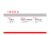 목차 Part.1 AJ렌터카 기업선정이유 기업소개 Part.2 AJ렌터카 고객만족경영 고객관리프로세스 서비스혁신 Part.3 정리 및 Q&A 정리 및 개선방안 Q&A 본문 <고객 만족 경영의 성과> 다각적인 서비스 혁신을 통한 고객 만족 경영을 통해 AJ렌터카의 주요 고객 가치 지표는 2007년 이래 전 영역에 걸쳐 눈에 띄게 향상되고 있다. 우선 고객 만족 지수(CSI)는 고객만족 경영 초반기인 2007년 91.9 점에서 2010년 93.1 점으로 지속적으로 상승되고 있다. 반면 2010년의 고객불만율은 전년의 9.3점에서 8.6점으로 하락하였다. 고객 추천 지수도 2008년 부터 급격히 향상되고 있음을 확인 할 수 있다. 서비스 품질 지수(SQI) 역시 2009년의 76점에서 2010년의 80점으로 향상되고 있다. 이러한 고객 만족 지수의 전반적 향상과 더불어 매해 신규 고객이 꾸준히 유입되고 있으며 그 결과 2010년의 매출액은 2007년의 1,963억원에서 약 38% 증가한 2,709억 원에 달하고 있다. 2011년 6월에 수행된 렌터카 브랜드 별 이용 고객 만족도 조사에 의하면 5점 척도로 측정한 서비스 이용 경험자들의 AJ렌터카에 대한 만족도 수준은 평균 4점으로 업계에서 가장 강력한 경쟁자에 대한 평균 만족도 3.7점 보다 높은 것으로 나타났다. 하고 싶은 말 AJ렌터카 경영분석과 AJ렌터카 고객만족경영과 서비스혁신사례분석및 향후개선방향제언 PPT레포트입니다. 키워드 AJ렌터카, 아주렌터카, 고객만족경영, 서비스혁신, 마케팅 |