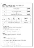 본문 1) 실험장치를 준비한다. 2) 질량관성모멘트 값 계산을 위해 필요한 측정값들을 측정한다. (쇠막대의 길이, 쇠구슬의 길이, 쇠구슬의 질량 등 ) 3) 단진자 운동 실험 기구를 설치한다. (쇠구슬을 쇠막대에 고정, 지지대에 쇠막대를 올림) 4) 쇠막대의 왕복운동을 위해 각도를 0도에 가깝게 하여 왕복운동을 시킨다. (3회) 5) 왕복운동이 진행되는 동안 스톱워치로 시간을 측정한다. 6) 측정값을 질량관성모멘트 값을 구하기 위한 식에 대입하여 계산한다. 7) 이론값과 측정값을 비교한 후 상대오차를 구한다. ※ 실험 시 가정※ 단진자 운동은 평면운동만 한다. 공기저항은 받지 않는다고 가정한다. 쇠막대와 쇠구슬의 질량분포는 균일하다고 가정한다. 하고 싶은 말 열심히 작성하고 좋은 평을 받은 리포트 입니다. 키워드 질량, 실험, 관성, 운동, 모멘트, 단진자 |