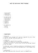 목차 Ⅰ. 아동상담과 놀이치료 1. 아동상담의 개념 2. 아동상담과 놀이치료 Ⅱ. 놀이치료의 주요 이론 1. 정신분석적 놀이치료 2. 분석적 놀이치료 3. 아동 중심 놀이치료 4. 관계놀이치료 5. 게임놀이치료 6. 모래놀이치료 Ⅲ. 놀이치료를 위한 준비 1. 놀이치료자 2. 놀이치료실 본문 Ⅰ. 아동상담과 놀이치료 1. 아동상담의 개념 1) 아동상담이란 : 아동의 가정의 틀을 유지하며 그 틀 안에서의 기능을 강화하기 위해 아동 및 가족성원의 기능을 신장시키도록 직접적, 간접적으로 돕는 전문적인 분야 2) 아동상담의 대상 ① 가족생활에서 오는 자연적인 위기-이혼 사망, 출산 등등 ② 아동의 신체적 정신적 행동적 문제가 있을 경우-상담, 재활, 심리치료를 해야함 ③ 부모능력의 부족으로 인한 위기 - 부모의 빈곤, 편부모 가정, 부모의 정신적 신체적 질병, 가족성원간의 부조화, 부모의 문제행동 3) 아동상담의 목표 : 아동자신이 주위환경에 보다 잘 대처해 나갈 수 있도록 능력을 길러주고 아동이 주의환경을 스스로 통제할 수 없는 연령이므로 아동의 행동변화를 촉진시킬 수 있도록 주위환경을 개선하도록 돕는 일. 2. 아동상담과 놀이치료 놀이란? 즐겁고 생활의 일부이며 어른의 언어와 유사하다. 놀이로서 자신의 발달을 촉진시킨다. 3. 아동정신병리의 특징 -아동이 정상인지 아닌지 판단. 정신병리는 특정연령에서 기대되는 행동을 보이지 못하는 경우, 아동의 발달에 방해가 되고 환경에 어려움에 있을 때 정신병리라고 한다. Ⅱ. 놀이치료의 주요 이론 1. 정신분석적 놀이치료 Freud - 정신분석의 창시자. 초기아동기에 대한 정신 분석적 흥미가 현대의 놀이치료의 기원 정신분석학+ 치료의 개념 도입 : 인간행동을 이해하는데 도움이 된다고 봄. 주요이론은 본능, 리비도, 의식과 무의식, 자유연상, 꿈의 해석 정신결정론 : 인간이 행동을 하는 것은 분명한 이유가 있다. 프로이드의 성격구조 본능(id) :맹목적 충동적, 현실만 있다. 자아( ego) : 현실의 외적요소와 관계하면서 스스로 해결, 현실+정신적 사고 초자아(superego) : 양심 완성추구, 이상적 목표 프로이드의 방어기제 참고문헌 강위영 외 7인(1997), 아동의 이해와 심리행동 치료교육, 대구대학교 : 출판부 강문회 역(1996), 놀이와 아동, 교육과학사 박정순(1987), 유희성 놀이프로그램을 통한 언어적 표현력 신장방안 현장연구논문 송영혜(1999), 놀이치료 원리, 대구 : 대구대학교출판부 서영숙(1992), 놀이를 통한 아동심리치료, 학문사 홍강의 조수철(1985), 놀이의 기능과 의미, 정신의학보 하고 싶은 말 잘 활용하셔서 좋은 결과 얻으세요^^* 키워드 치료, 놀이치료, 놀이치료의, 치료의, 정신분석, 주요 |