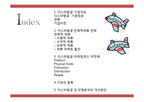 목차 1. 이스타항공 기업개요 이스타항공 기본정보 연혁 기업비전 2. 이스타항공 전략적제휴 전략 전략적 제휴 ? 수평적 제휴 ? 수직적 제휴 ? 외부적 제휴 ? 제휴 마케팅 할인 3. 이스타항공 마케팅믹스 5P전략 Product Physical Evidence Promotion Distribution People 4. IT와의 접목 5. 이스타항공 강.약점분석과 개선방안 본문 Distribution - 주요 판매 채널 ① 직접 채널 - 이벤트 참여 'Time Hot Sale'이라는 이벤트를 이용하여 고객이 직접 항공권을 예약 - 홈페이지 예매 이스타항공 홈페이지를 통해 항공사와 고객이 직거래 가능 ② 간접 채널 - 티켓 몬스터 : 이스타항공의 실시간 할인 최저가 조회 및 예매가 가능. - 이마트 : 항공사 최초로 대형 할인마트에서 항공권 판매. 하고 싶은 말 이스타항공 기업분석과 마케팅전략,전략적제휴전략분석및 이스타항공 강약점분석과 개선방안 PPT레포트입니다. 키워드 이스타항공, 서비스마케팅, 저가항공사, lcc, 제주항공 |