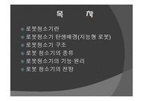 목차 로봇청소기란 로봇청소기 탄생배경(지능형 로봇) 로봇청소기 구조 로봇 청소기의 종류 로봇청소기의 기능 원리 로봇 청소기의 전망 본문 로봇청소기란? 로봇청소기는 대표적으로 상품화 되어 있는 가정용로봇으로, 바닥을 돌아 다니며 먼지나 작은 물질 등을 제거하는 솔(브러쉬) 및 진공식 청소 로봇이며, 일부 제품에는 물걸레가 달려 물걸레 청소가 가능한 모델이 있음. 배터리 동력 이용 및 여러 개의 센서에(바닥인식 센서, 낭떠러지 인식센서, 바퀴빠짐 감지센서, 주행 직진성 보정 센서) 의해 장애상황을 감지하고 거리 및 방향을 정확히 탐지하여 자율적인 판단에 의해 가정 내부를 이동하며 청소 키워드 메카, 로봇청소기, 로봇, 청소기, 트로닉스, 메카트로닉스 |