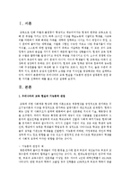 목차 Ⅰ. 서론 Ⅱ. 본론 1. 우리나라의 교육 현실의 기능론적 관점 - 기능론적 관점의 예 2. 우리나라의 교육 현실의 갈등론적 관점 - 갈등론적 관점의 예 3. 우리나라의 교육 현실의 관점의 예 - 갈등론적 관점 4. 우리나라의 교육 현실의 기능론적 관점과 갈등론적 관점 비교 5. 나의 의견 Ⅲ. 결론 참고문헌 본문 Ⅰ. 서론 교육으로 인해 차별과 불평등이 형성되고 계승되어가는 현재의 한국은 교육으로 인해 큰 부담을 가지고 있다. 하루 16시간 이상을 학습노동에 시달리는 학생들, 사교육비를 마련하기 위해 해체된 가족들, 대학에 입학하고 나서도 다시 대입이나 편입, 고시 준비에 들어가는 대학생들, 서열화 시험인 수능만 치르고 나면 무용지물이 되는 지식들, 스스로에 대한 절망을 견디지 못하고 자살하는 학생들, 이 모든 것이 교육 정책이 교육의 본질을 지키지 못하기 때문에 벌어지는 상황들이다. 현재의 교육 정책은 수많은 탈락자를 발생시키고 국민적 부담을 가중시키고 있다. 소수의 경쟁력 있는 인재가 육성되지 않는 것이 문제가 아니다. 다수의 학생들이 현 교육제도 아래서 건 참고문헌 권기욱 외(2010). 교육학개론. 도서출판 보현사. 권영창 외(2005). 교육의 이론과 실제. 형설출판사. 장미혜(2002). 사회계급의 문화적 재생산. 한국사회학. 김현정(2008). 한국사회의 교육 불평등 재생산에 관한 고찰. 건국대학교 교육대학원 석사학위논문. 하고 싶은 말 우리나라의 교육 현실을 기능론적 관점과 갈등론적 관점 중 한 가지를 선택하여 예를 들고 비교 설명하시오 키워드 교육, 교육현실, 우리나라 교육, 갈등론적 관점, 기능론적 관점 |