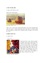 목차 1. 바실리 칸딘스키의 생애 2. 칸딘스키 회화의 조형 요소 1) 점 2) 선 3) 면(기초평면) 4) 형태 5) 색채 3. 바실리 칸딘스키 작품 분석 1) 수업 시대 (1866~1896) 2) 뮌헨시대 (1896~1914) 3) 러시아시대 (1914~1921) 4) 바우하우스시대 (1922~1933) 5) 파리시대 (1933~1944) 【 참고자료 】 본문 ◈ 바실리 칸딘스키의 생애와 칸딘스키 작품 분석 ◈ 1. 바실리 칸딘스키의 생애 모스크바에서 태어났다. 몽고족의 피가 섞인 부친은 중국과 접경한 동시베리라의 끄자흐따 출신의 부상이며, 모친은 모스크바 출신이었다. 그는 서유럽과 동양 사이에 있는 러시아 특색을 몸에 지니고 있었고 이 사실은 칸딘스키의 색감에서 찾아 볼 수 있는데 과학적인 양상과 동양적이고 신비주의적인 인식은 항상 지니고 있었다. 1869년 3살 때 부모와 이탈리아 여행을 한 것이 어린 그에게 강한 인상을 주었다. 1871년 아버지 건강의 문제로 남부 러시아의 오뎃사로 이사하였다. 이 해 부모의 이혼으로 큰이모의 손에서 성장하였는데 예민하고 감수성이 많은 그에게 내적 긴장, 불안 등의 고통을 그림 그리는 일로써 가라 앉혔다. 독일계 여자인 이모는 칸딘스키에게 독일 동화를 들려줌으로써 오색영롱한 공상의 세계로 그를 이끌어 갔고 그의 그림을 살찌우게 한 요소로 작용하였다. 어렸을 때부터 색채감각이 예민하고 회화에 관심도 많았으며 내면성을 중시하는 그의 성격이 점차적으로 형성되어 갔다. 1876년에는 오뎃사 김나지움에 입학하여 9년간 다녔는데 이곳에서 정규과목 외에 미술, 피아노, 체로를 공부했다. 참고문헌 마순자외 2명 역(1995)「KANDINSKY 20세기 미술의 발견」서울: 예경 칸딘스키 저, 차봉희 역(1987)「점, 선, 면」서울: 열화당 배미영(2010)「칸딘스키 조형이론과 작품분석을 통한 색채특성에 관한 연구」이화여자대학교 대학원 논문 김화성(2007)「칸딘스키 회화의 조형적 특성 연구」홍익대학교 교육대학원 논문 이정화(2004)「칸딘스키 예술이론을 통한 추상회화 지도에 관한 연구」경북대학교 교육대학원 논문 황계숙(1996)「바실리 칸딘스키 연구」경성대학교 대학원 논문 하고 싶은 말 바실리 칸딘스키의 생애, 칸딘스키 회화의 조형 요소, 바실리 칸딘스키 작품 분석하였습니다. 키워드 칸딘스키, 바실리칸딘스키, 바실리 칸딘스키, 칸딘스키 작품, 칸딘스키작품 |