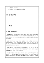 목차 Ⅰ. 서론 1. 손톱 물어뜯기란? Ⅱ. 본론 1. 손톱을 물어뜯는 원인 1-1. 심리학적 견해 1-2. 일반적인 원인 2. 손톱을 물어뜯는 습관을 고쳐야 하는 이유 3. 치료방법 3-1. 행동적 교정방법 3-2. 아동과 부모가 함께하는 개선방법 Ⅲ. 결론(요약) 본문 현재 전문가들이 추정하고 있는 전 세계 손톱 물어뜯는 강박증 환자의 수는 6억 명 정도. 특히 어린이와 10대 아이들의 45%가 손톱을 뜯는 버릇이 있는 것으로 파악되고 있다. 이 버릇이 심한 사람들은 사회적 활동에도 불편을 겪기도 한다. 자꾸 물어뜯어 이상해진 손을 감추거나, 지속적으로 외부와의 접촉을 꺼리는 경우도 많다. 심한 경우 40대가 될 때 까지 버릇은 계속되며, 심지어 발톱까지 물어뜯는 경우도 생긴다. 손톱 물어뜯기는 해소되지 않은 심리적 스트레스 때문에 발생하며, 원인을 찾아 조기에 고치는 것이 중요하다. 아동의 잘못된 버릇을 고치는 데는 부모의 많은 노력이 필요하다. 좋지 않은 습관을 한 번에 멈추게 하는 방법은 없다. 사람의 마음은 그렇게 단순하지 않은 것이다. 여유를 갖고 먼저 문제의 원인이 무엇인지 관심을 가져주면 아동의 변화가 있을 것이다. 아동이 편안하고 행복해지려면 꾸준한 관심과 노력이 필요하다. 참고문헌 참고문헌: 아동발달심리, 김정희 외 (1997) 창지사 프뢰벨 Mother & Father (2004년 1 2월호) http://www.bumonet.or.kr (부모넷) http://blog.naver.com/yoorim2000/50009690336?navertc=6&sm=top_kup http://emmauskid.com/gnu3/?doc=bbs%2Fgnuboard.php&bo_table=pds&page=1&wr_id=91 (다솜아동청소년연구소) http://www.eduthera.com/sharing/list.asp?run=_final&code=12&step=1&depth=1&page=35&all_counter=533&parent_file=list.asp&searchselect=&txtsearch= (한국아동발달지원센터) http://tongtong-i.com/board/view.php?id=class_p&page=1&sn1=&divpage=1&sn=off&ss=on&sc=on&select_arrange=headnum&desc=asc&no=70 http://www.healthlife.co.kr/bbs.php?bid=1164647542&operation=view&no=1828&page=&row=&start=&img=&smode=&fileB= 하고 싶은 말 아동상담,손톱물어뜯기,해결방안,원인 키워드 아동상담, 손톱물어뜯기, 해결방안, 원인 |