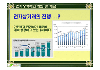 목차 1. 전자상거래의 정의와 개념 2. 전자상거래의 장 단점 3. 전자상거래 성공비결 7가지 4. eBay에 성공사례 5. 전자상거래의 미래 6. 결론 본문 전자상거래 성공비결 7가지 * 첫째, 보고서는 우선 현실적인 가격으로 물건을 판매해라. * 둘째, 소비자들이 상품과 서비스의 가치에 대한 신뢰감을 가지도록 해라. * 셋째, 일반적으로 평균 매출량과 판매 가격은 비례한다는 점을 소비자들에게 인식시키도록 한다. * 넷째, 소비자들에게 친근함을 줄 수 있는 웹사이트 디자인을 채택하도록 한 다. * 다섯째, 사이트 방문객과 실제 구입 고객을 동시에 늘릴 수 있는 방안을 마련 한다. * 여섯째, 비용면에서 효과적이고 제품 자체에 대한 만족도가 높은 제품을 구비하도록 한다. * 일곱째, 다양한 고객 서비스 창구를 마련해 완벽한 고객 서비스를 제공한다. 양키 그룹의 폴 리터 이사는 "전자상거래 회사들이 보고서가 제시한 7가지 요건을 만족시키는데 실패한다면 올해는 성공하기는 힘들 것"이라며 "내년에는 이러한 요건들을 만족시키지 못한 회사들이 사업을 중단하는 사례를 쉽게 목격할 수 있을 것"이라고 말했다. 키워드 성공사례, 전자상거래, 이베이, 성공, 경영, 상거래 |