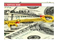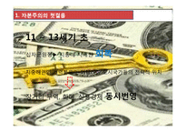 목차 1.자본주의의 첫 발걸음 2.유대인의 등장과 금전거래 3.메디치 가문의 흥망성쇠 4.메디치 가문의 흥망성쇠 5.요약 및 정리 본문 7세기 ~ 8세기 초 무슬림의 지중해 정복 ▶ 무역과 사상교류 중단 로마제국 쇠퇴 ▶ 토지 → 주요경제요인 ▶ 상인계급 몰락 → 상업활동정지 ↓ 농업중심 경제로 추락 11 ~ 13세기 초 십자군원정▶ 지중해 지배권 회복 지중해권의 세력분포 + 이탈리아 도시국가들의 전략적 위치 장거리 무역, 화폐, 신용경제 동시번영 12세기후반 ~ 13세기 '상업혁명' ▶ 초기 자본주의와 도시 시민계급 출현 ↓ 유럽에서의 시장확대 & 해외로의 팽창 핵심추진력 = 해상무역(海上貿易) 문제점 ① 화폐의 주조와 유통의 한계 → 동전수송 無 신용형태 ② 화폐 운반의 고위험 부담 현대적 지불수단의 기원 자본 및 신용경제시대 도래 이탈리아 상인들이 야외 걸상(banchi) 위에 앉아 거래 →'Bank' 유래 중세 말기의 통화제도 - 복잡하고 관리가 어려움 로마식 숫자 표기법의 부적절성 ▶ 피보나치의 10진법 소개 ▼ 계산 불편감소◀ 수학의 글로벌화 키워드 화폐스캔들, 스캔들, 화폐 |
