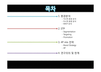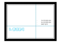 목차 1. 환경분석 - 거시적 환경 분석 - 미시적 환경 분석 - SWOT 분석 2. STP - Segmentation - Targeting - Promotion 3. 4P mix 전략 - Brand Strategy - 4P 4. 연구의의 및 한계 본문 SWOT분석 높은 신뢰도와 인지도 차별화된 기능성 제품 체계적 유통망 관리시스템 국민건강을 생각하는 참된 이미지 음료제조의 보안 취약 제품 관련 인지도 부족 지속적 홍보의 관리필요성 의약품 이미지 인식 환경성 위험의 질환 증가 면역증진효과 식품 관심 실제 음료성분의 함량 논란 음료시장의 계속적 성장 well-bing 열풍 치열한 시장경쟁 계속되는 신제품 유사제품의 범람 설문조사 실시 일시 2011 . 5 . 9 ~ 5 . 15 (7일간 실시) 대상 학생 직장인 주부 (총70명) 목적 및 내용 기능성 음료에 대한 소비자들의 성향 파악 육하원칙에 따른 질문 유형 기능성 음료의 구매목적 및 이유 키워드 광동제약 기능성 음료 마케팅전략, SWOT 분석, 기능성 음료시장, 마케팅전략 |