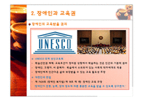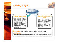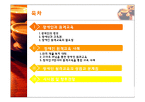 목차 1. 장애인과 원격교육 1. 장애인의 정의 2. 장애인과 교육권 3. 장애인 원격교육의 필요성 2. 장애인 원격교육 사례 1. 한국 재활 복지 대학 2. 스마트 러닝을 통한 장애인 원격교육 3. 장애인 IT강사의 원격교육을 통한 교육 사례 3. 장애인 원격교육의 장점과 문제점 4. 시사점 및 향후전망 본문 우리나라 장애인복지법 지체 장애, 시각 장애, 청각 장애, 언어 장애 또는 정신 착란 등 정신적 결핍으로 인하여 장기간에 걸쳐 일상 생활 또는 사회생활에 상당 한 제약을 받는 자로서 대통령령으로 정하는 기준 에 해당하는 자 UN총회 장애인 권리 선언(1975) 선천적이든 후천적이든 관계 없이 신체적, 정신적 능력의 불완전으로 인하여 일상의 개인 또는 사회생활에서 필요한 모두 혹은 일부를 확보하는데 스스로 할 수 없는 사람 장애의 유형 : 지체 장애, 시각 장애, 청각 및 언어 장애, 정신 박약 등 지체 장애란? 골격, 근육, 신경 중 하나 또는 일부, 전체가 질병이나 외상 등으로 정상적인 기능에 장애가 있는 상태 UNESCO 국제 성인교육회 학습선언권 채택: 교육조건이 정비된 상황에서 학습하는 것은 인간의 기본적 권리 장애인, 고령자, 비 문해자: 학습에서 소외되어 있는 사회적 약자에게도 적용 장애인에게 인간다운 삶의 보장받을 수 있는 교육 필요성 주장 대한민국 헌법 제 7630호 (장애인 복지법) 제 18조 제 1항: 장애인 교육 규정 '장애인이 연령, 능력, 장애 정도에 따른 충분한 교육을 받을 수 있도록 강구한다.' 원격 교육 지원 센터 - 청각장애인, 시각장애인 원격 교육 - 인터넷, 인트라넷 활용 URIS Center 운영 - Ubiquitous Remote Information Support - 청각장애: 실시간 수화, 문자 통역서비스 - 시각장애: 강의자료 변환, 웹 탐색, 대독 강의실 - 고감도 카메라와 마이크 이용 - 수화통역사와 속기사가 학생들에게 전달 수화 지원실 - 수화통역사: 강의 내용 카메라로 전송 속기 지원실 - 속기사: 강의내용 확인 학생들에게 전달 <시각 장애 지원> 문서변화 서비스 웹 자료 탐색지원 대독 서비스 지원 자료 다운 (음성지원) 보고서 작성 지원 <청각 장애 지원> 원격 화상강의 참여 수화 영상 자막 전송 학습 컨텐츠 보기 재활복지대학, 청각장애학생 원격교육 확대 (2012.07.27/ 복지연합신문) 한국재활복지대학(총장 이창호)은 학령기 청각장애학생의 교수-학습 지원의 하나로 원격교육을 통한 수화통역 및 속기(문자통역)를 제공한다고 27일 발표했다. 그동안 한국재활복지대학은 시각장애 및 청각장애 대학생 등에게 교수-학습 지원을 위한 전국 규모의 원격교육을 지원해왔다. 이번 발표는 지원 대상 범위를 학령기 장애학생까지 확대하는 것이다. 한국재활복지대학은 "향후 원격교육 지원을 통한 교육 수혜 대상자가 더욱 확대되도록 유관 부처 및 기관과의 협력을 통해 예산확보 등 행 재정 기반 구축을 위해 적극 노력할 계획"이라고 전했다. 키워드 장애, 장애인, 원격교육, 교육, 원격 |