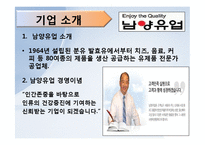 목차 1.기업 소개 2.기업 연혁 3.비윤리경영사례 4.윤리경영사례 5.싼루기업의 멜라민 사태 6.기업소개 7.윤리경영 8.비윤리경영 9.결 과 10.총리( 家 ) 방문 11.심 판 12.시민의 관심도 13.사례 분석 본문 1.남양유업 소개 1964년 설립된 분유 발효유에서부터 치즈, 음료, 커피 등 80여종의 제품을 생산 공급하는 유제품 전문가공업체. 2. 남양유업 경영이념 "인간존중을 바탕으로 인류의 건강증진에 기여하는 신뢰받는 기업이 되겠습니다." 윤리경영사례 ★ 환경지킴이 남양(청계천 환경지킴이 外) 남양은 인근환경의 청결개선을 위해 환경 지킴이'운동으로 정기적인 환경 정화 활동을 펼침. ★ 문화지킴이 남양(창덕궁 문화지킴이 外) 남양은 정기사회공헌활동으로 문화재 보호 및 청결을 위한 '문화 지킴이' 활동을 통해 우리의 문화재를 아끼고 보호하는 일에 앞장서고 있음. ★사랑의 우유 릴레이 남양은 사회에서 소외된 불우이웃에게 우유로 따뜻한 온기를 전하는'사랑의 우유 릴레이'활동으로 이웃사랑을 실천하고 있음. ★사회 복지기관 지원 남양은 정기적인 보육원 등의 사회복지기관으로의 방문 봉사활동으로 사랑을 전하고 있음. 하고 싶은 말 키워드 남양유업, 윤리경영, 싼루기업, 멜라민사태, 비윤리경영 |