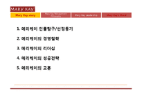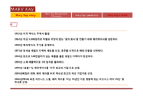 목차 1.메리케이 인물탐구/선정동기 2.메리케이의 경영철학 3.메리케이의 리더십 4.메리케이의 성공전략 5.메리케이의 교훈 본문 사람들은 제게 어디에서 통찰력과 동기 부여를 받았는지 끊임없이 물어봅니다. 그러면 저는, 메리 케이사의 뷰티 컨설턴트들이 저의 소망대로 성공한 내셔널 세일즈 디렉터가 되었을 때 그들로부터 영감을 얻는다고 대답합니다. 진심으로 저는 그렇게 믿습니다. 여러분들은 메리케이사의 전부입니다. 저는 이제 이 횃불을 여러분에게 넘깁니다. 우리 회사를 그 어느 때보다도 위대한 기업으로 만드는 책임이 이제 여러분에게 넘겨졌습니다. 저는 저의 신념을 엉뚱한 사람들에게 전해주고 있지 않다는 사실에 감사하고 있습니다. 너무나도 멋지게 사업을 이끌어준 점에 대해서 이 자리를 빌어 여러분께 감사의 말씀을 드립니다. 나아가 여러분의 리더십과 우리 회사에 대한 믿음, 그리고 여러분이 즐기고 있는 성공을 수백만 여성들도 이룰 수 있도록, 여러분이 돕고 있는 것에 대해서도 감사의 말씀을 드립니다. -1993년 내셔널 세일즈 디렉터 회의에서- 메리 케이의 리더십 8원칙 1. 칭찬을 통해 사람들을 성공적으로 이끌어라. 2. 상아탑을 무너뜨려라 3. 위험을 감수하라 4. 판매에 주력하라 5. 문제 해결자가 되어라 6. 스트레스 없는 업무 환경을 조성하라 7. 내부 사람들을 키워내어 발탁하라 8. 비즈니스가 있어야 할 곳에 있게 하라 1. 그들이 원하는 것을 얻을 수 있게 도와줘라 -그러면 우리도 원하는 것을 얻게 된다. -인간성 좋은 사람이 결국 성공한다. -리더의 성공은 부하 직원의 성공에서 비롯된다. 2. 골든 룰 리더십 -남에게 대접 받고 싶은 대로 먼저 남을 대접하라. -어답티 프로그램 -사람들을 공정하게 대하라. 키워드 성공전략, 메리케이, 리더십 |
