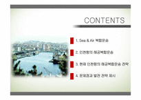 목차 1. Sea & Air 복합운송 2. 인천항의 해공복합운송 3. 현재 인천항의 해공복합운송 전략 4. 문제점과 발전 전략 제시 본문 Sea & Air 복합운송이란? 국제 운송에 있어서 해상운송의 저렴성 (economy of sea fright)과 항공 운송의 신속성 (speed of air cargo)을 결합시켜 수송 비용을 절감하고 수송 기간을 단축시키려는 국제 화물 운송 방식 Sea & Air 복합운송의 주요 요소 1.지리적인 위치 - 물동량이 창출될 수 있는 배후 산업단지를 갖추고 있는 인근에 공항과 항만이 모두 위치하고 있어야 한다. 2.정부의 관리운영시스템 - one-stop 서비스가 가능하도록 절차가 간소화되어야 하고 고객 지향적 마인드로 효율적인 운영이 가능하여야 한다. 3.항만 및 공항시설 - 두 시설을 연계하는 물리적인 거리가 가까워야 하며 상호간의 해공복합운송을 위한 전담 시설이 구비 된다면 더욱 효과적이다. 4.해운선사 및 항공사 - 화물의 효율적인 연계를 위하여 필요한 정보 및 서비스, 시설 등을 제공하여야 한다. 서울 및 경인공업지구의 관문 우리나라의 대표적인 수입항 정유산업 및 제철산업 등을 포함하는 제조산업의 원자재를 적기에 공급하고 제품의 원활한 수송을 담당 인천항, 인천공항, 수도권과 황해를 잇는 고속도로, 인천항과 공항을 잇는 인천대교 등 인프라 구축 1) 수도권의 중심항만 기능 - 부산항에 집중되던 수도권 공업단지의 수출입화물 분담 - 부산항보다 유리한 수도권과의 내륙운송이점을 활용 2) 중부서해안지역의 해상수송거점 기능 - 다른 항만과의 연계수송을 통한 서해안의 해상 수송거점 - 경기-충청지역으로의 인구 및 공장 분산에 따른 교통수요 증가 에 따른 체증을 해상수송으로 완화 3) 대 중국 및 대 북한 교역의 창구 기능 - 중국의 국제화물운송수요 분담에 가장 유리한 지리적 이점 - 남북관계 개선에 따른 북한과의 교류를 위한 전진기지 키워드 인천항 해공복합, 인천항의 해공복합운송, Sea Air 복합운송 |