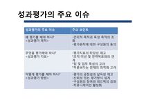 목차 1. Ch.8 성과평가 2. 대한항공 소개 - 선정이유 - 대한항공 HR - 대한항공 CSR 본문 성과평가의 중요성 "잭 웰치" - 자신이 GE에서 이룩한 최고의 성과를 "GE를 가장 실력 있는 회사로 만든 것"이라고 평가 GE를 실력 있는 회사로 변화시키기 위해서 다양한 정책을 활용 객관적이고 엄격한 성과평가가 그 핵심이다. 성과평가의 기준 전략적 부합(Strategic congruence) 타당도(validity) 신뢰도(reliablity) 수용성(acceptibility) 구체성(specificity) 성과평가의 방법 <평가주체에 의한 분류> -자기고과 -상사에 의한 고과(하향식 고과) -동료에 의한 고과 -부하에 의한 고과(상향식 고과) -고객에 의한 고과 -다면고과(360도고과 또는 전방위고과) 성과평가에서의 오류 평가오류의 종류 -중심화 경향 (Central Tendency) -관대화 경향 (Leniency error) -가혹화 경향 (Strictness error) -시간적 오류 (recency error) -대조 오류(Contrast error) -유사 오류(similar-to-me error) 키워드 성과평가, 대한항공 HRM, 대한항공 HR, 대한항공 CSR |