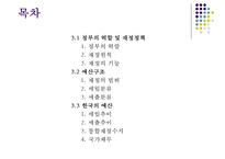 목차 3.1 정부의 역할 및 재정정책 1. 정부의 역할 2. 재정원칙 3. 재정의 기능 3.2 예산구조 1. 재정의 범위 2. 세입분류 3. 세출분류 3.3 한국의 예산 1. 세입추이 2. 세출추이 3. 통합재정수지 4. 국가채무 본문 3.2 예산구조 4. 국가채무 - 국가채무 = 국채 + 차입금 + 국고채무부담행위 + 지방정부 국가채무 1) 국채 : 국가가 발행하는 채권 2) 차입금 : 국내차입금 + 해외차입금 3) 국고채무부담행위 : 국회의 사전 의결을 받아 예산 확보 없이 미리 채무를 부담하는 행위를 말함(재해복구를 위한 국고채무부담행위) - 국가채무: 14.3조원(1985년) > 346.1조원(2009년) - 재정건전성이 최근 중요한 문제로 부각 하고 싶은 말 본 자료는 정부의 역할과 재정정책에 대해 설명하였으며, 예산 구조를 세입과 세출로 구분하여 정리하고, 한국의 예산 추이에 대해 상세하게 정리한 자료임 키워드 재정, 세이의 법칙, 보이지 않는 손, 확대 재정정책, 긴축 재정정책 |