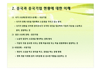 목차 1. 중국의 경제 유형에 대한 기업의 이해 2. 중국과 중국기업 현황에 대한 이해 3. 기업에 대한 오늘 날 중국인의 인식 4. 중국에 진출한 외국인 투자기업 5. 중국 서비스 시장에서 활성화 되는 외국기업 6. 변화하는 중국 서비스 시장에 대한 대책 7. 변화하는 중국 서비스 시장 성공사례 8. 결론 9. 참고문헌 본문 - 서비스 시장에 진출을 성공한 기업을 살펴보면, 초기부터 개방과 협조적인 마인드로 제품과 서비스를 개발하였다. 이러한 기업들은 현지의 리서치센터를 통해서 지역의 특성과 라이프 스타일을 파악하고 현지업체와의 연계를 강화하고 있다. 최근 진출을 주력을 하는 기업들이 속한 업종들을 살펴보면 서비스업으로 확장이 되고 있음을 알 수가 있다. 서비스 분야의 기업은 수출이 힘들다는 선입견에서 벗어나 개방 협조적인 마인드로써 과감하게 중국시장에 진출하는 기업이 늘고 있다. 또한 경쟁력을 확보한 중국 내의 기업들과의 거래를 지렛대로써 활용하기도 참고문헌 1) 국제경제론(1994) * 저자 : 김인준, * 출판사 : 다산출판사 2) 경제기획원 지역경제 2과, 세계 경제권 편람(1994.7) 3) 중국의 기업문화(2008.9.30) * 저자 : 리우젠 화, * 출판사 : 정은출판사 4) 100대 기업을 통해 본 중국의 산업지형도 변화 (2010) * 저자 : 썬쟈 선임연구원 조사 5) SERI 경영노트 제 77호(2010.10.21) * 저자 : 김정우 수석연구원 외 1명 * 출판사 : 삼성경제연구소 하고 싶은 말 외국기업의 중국 서비스 시장 진출 사례에 대해서 조사한 레포트입니다. 키워드 외국기업, 중국서비스시장, 중국 서비스 시장 성공사례, 중국 서비스, 서비스 시장, 외국인 투자기업, 중국인의 인식, 중국기업 현황, 경제 유형에 대한 기업의 이해 |