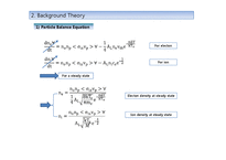 목차 Objective Background Theory Experiment condition Results & Discussion Summary Reference 본문 1. Objective Probe를 통해 얻어진 V-I곡선을 이용하여 plasma의 특성(temperature, density 등)을 알아본다. Pressure와 방전 Gas의 변화에 따라 plasma의 특성이 어떻게 변화하는지 알아본다. Particle balance equation을 이용해 electron과 ion의 density를 구해본 후 실험값과 비교해본다. B1조의 radial 방향의 전자, 이온 밀도 결과를 보면 magnetic cusp에 의한 loss를 볼 수 있다 B1조의 결과에서 역시 4.5cm 근방에서 전자밀도와 이온밀도 차이가 변하는 것을 확인할 수 있었다. 참고문헌 김남균 외, "정전탐침을 이용한 필라멘트 방전 플라즈마 진단-매뉴얼", 2012학년도 핵융합 플라즈마 실험 Michael A. Lieberman, "Principles of Plasma discharges and materials processing", 2nd edition, Wiley-interscience, 2005 B.A.Tozer, "Cross Section for ionization of the Inert Gases by Electron Impact", Jounal of Electronics and Control, 1960 Robert L. Merlino, "Understanding Langmuir probe current-voltage characteristic", 2007 2012학년도 1학기 핵융합 플라즈마 실험 B1조 4월 19일 발표자료. 키워드 발표본, 정전탐침법 |