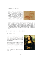 목차 Ⅰ. 서론 1. 작성방향 2, 주제설정계기 Ⅱ. 본론 1. 모나리자의 해석과 레오나르도 다빈치의 천재성의 관련성 1) 엔지니어 겸 건축가로서의 레오나르도 2) 해부학자로서의 레오나르도 3) 과학자로서의 레오나르도 2. 수업시간에 언급한 내용과 새로운 의문점 1) 수업내용 요약 2) 새로운 의문점 3. 나만의 해석 1) 당시 상황의 반영은 아닌가? 2) Ⅲ. 결론 <참고문헌> 본문 Ⅰ. 서론 서양문화의유산 수업을 듣기 전에는 강의내용을 이해하여 따라갈 수 있을지 걱정이 많았다. 왜냐하면, 역사 과목은 흔히 많은 연도나 사건을 '암기'하는 데에 중점을 두는데 나는 그다지 암기력이 좋지 않았기 때문이다. 그래서 예전에 역사과목을 이수하던 때에는 수업자체에 흥미를 느끼기 이전에 수업에 따라가는 것도 벅찼다. 하지만, 이번에 강의를 통해 위에 삽입한 표와 같이 기존의 암기 및 주입식 방식에서 벗어나, 다양한 매체를 통해 기존의 학설에 의문을 제기하며 새로운 각도로 재해석해보는 방식으로 역사를 배우면서 다시 역사공부에 흥미를 가질 수 있었다. 1. 작성방향 이번 보고서에서는 레오나르도 다빈치의 작품인 '모나리자의 슬픈 미소'에 대해 써내려가고자 한다. 보통 회화는 다양한 접근방식으로 해석되지만 어떤 특정한 일반적으로 옳다고 믿어지는 유일무이한 '정설'이 있으며, 많은 사람들이 그 정설에 따라 특정한 방식으로만 해석하는 작품을 해석하는 경향이 있다. 레오나르도 다 빈치의 모나리자라는 작품에도 많은 사람들이 따르는 해석방식인 정설이 존재한다. 하지만 수업시간에서는 그 정설과는 조금 다른 학설에 대해 공부하였는데, 나는 이러한 접근방식이 의미가 있는 것이라고 생각한다. 왜냐하면, 다빈치의 천재성을 고려해보았을 때, 그림의 배경이나 표정은 우연이나 실수에 의해 그려진 것이 아니라, 그의 사상이 담긴 것이라고 볼 수 있다고 생각이 되기 때문이다. 따라서 우선 본론에서 다양한 모나리자라는 그림이 다양한 해석방식이 존재할 수 있는 이유인 그의 천재성에 대해 초점을 맞추어 이야기하고자 한다. 참고문헌 위대한 예술가의 생애 레오나르도 신화가 도니 르네상스 맨, 엔리카 그릿피노 지음, 김경량 옮김, 마로니에북스 르네상스시대 근대정신은 어떻게 탄생했을까?, 장문석 지음, 믿음인, 2011 하고 싶은 말 좀 더 업그레이드하여 자료를 보완하여, 과제물을 꼼꼼하게 정성을 들어 작성했습니다. 위 자료 요약정리 잘되어 있으니 잘 참고하시어 학업에 나날이 발전이 있기를 기원합니다 ^^ 구입자 분의 앞날에 항상 무궁한 발전과 행복과 행운이 깃들기를 홧팅 키워드 문화, 연세, 연세대학교, 레포트, 서양문화유산, 대학교 |