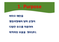 목차 1. Purpose 2. Theory 3. Methods 4. Result 5. Conclusion 6. References 본문 1. Purpose 바이오 에탄올 생성과정에서 당화 공정시 다양한 효소를 사용하여 최적화된 효율을 찾아낸다. 실험재료 재 료 선 정 국립수산과학원의 자료를 참조한 국내산 해조류의 구성성분 분석표를 보면 바이오 에탄올의 생산을 위한 당의 구성성분인 탄수화물 성분 (섬유소 + 당질)이 우뭇가사리가 72.4%로 가장 높게 나타났기에 가장 효율이 높다고 판단. 우뭇가사리(5g,20g)과 증류수 (100ml, 400ml)를 500ml 비커에 넣어 혼합. 사용효소에 따라 pH를 조절 후, 1ml, 4ml의 효소를 첨가하여 각 효소별 반응조건에 따라 1주일 동안 당화시킨다. 참고문헌 1) Recent trends in global production and utilization of bio-ethanol fuel Applied Energy, Volume 86, Issue 11, November 2009, Pages 2273-2282 Mustafa Balat, Havva Balat 2) 해조류를 이용한 바이오에너지 생산 타당성 연구 2007-N-B117-P-01 산업자원부 3) Production of Bio-ethanol from Brown Algae by Physicochemical Hydrolysis 신라대학교 의생명과학대 생명공학과 키워드 화학공학, 효소당화, 바이오, 시스템, 에탄올 |