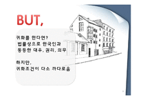 목차 1. 국적: 이중국적의 법률적 개념 2. 복지제도: 장애인복지, 연금복지혜택 차별화 문제 ☞개선현황&방안 기타 상업적 불편사항(지하철노인복지, 인터넷과 금융거래,병역) 3. 교육제도: 화교학교 운영실태, 대학입시, 학력인정 ☞개선방안 본문 국적 1. 현재 한국에 거주하는 화교: 대만국적 2. 부모 중 한 명이 한국인이 있는 경우: 일정한 나이가 되면 국적 선택 3. 최근 장기체류외국인에 대한 이중국적문제 http://news.naver.com/main/read.nhn?mode=LPOD&mid=tvh&oid=214&aid=0000123795 <현재 화교들의 국적에 관련된 법> 1. 1988년 출입국 관리법의 개정 갱신기간 변화 :F-2비자(거주관련) 3년에서 5년 2. 재한 화교에 대한 특례조치 화교가 부득이한 사정으로 국적을 상실한 경우에도 한국에 직계가족이 남아 있는 사람 등은 예외로 거주권을 회복 3.2002년 4월 비자 가진 장기체류 외국인 가운데 만 5년 이상 한국에 합법적으로 거주한 사람과 해당자의 미성년 자녀에게 F-5영주권 부여 가능(신청에 의한 영주권) 4. 1997년 새 국적법에 따라 부모 양계 혈통주의 어느 한쪽이 한국인이기만 하면 출생 장소에 상관없이 한국 국적 얻음 키워드 화교제도, 법률적, 개선, 방안, 제도 |