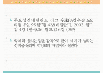 목차 약력 및 활동 히딩크 리더십 히딩크 리더십의 결과 히딩크 리더십의 교훈 본문 히딩크 약력 및 활동 1946년 11월 8일 네덜란드 출생 선수경력:네덜란드 드 그라프 샤프, PSV 아인트호벤, 미국 위싱턴 디플로매츠, 프랑스 NEC 니메가 에서 활동 감독 : 네덜란드 PSV 아인트호벤 , 터키 페네르 바헤 이스탄블 스페인 발렌시아 , 네덜란드 국가대표팀, 스페인 레알 마드리드, 스페인 레알 베티스 , 대한민국 월드컵국가대표팀, 호주국가대표팀, 현 러시아 감독 하고 싶은 말 좀 더 업그레이드하여 자료를 보완하여, 과제물을 꼼꼼하게 정성을 들어 작성했습니다. 위 자료 요약정리 잘되어 있으니 잘 참고하시어 학업에 나날이 발전이 있기를 기원합니다 ^^ 구입자 분의 앞날에 항상 무궁한 발전과 행복과 행운이 깃들기를 홧팅 키워드 리더쉽, 히딩크 |