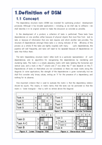 목차 1.Definition of DSM 2. THE ALGORITHM 3. Class Diagram 4. Program Design 5. Program Test 6. Program screen shots 본문 1.Definition of DSM 1.1 Concept The dependency structure matrix (DSM) was invented for optimizing product development processes. Although it has broader applications including, as we shall see, to software we shall describe it in its original context to make the discussion as concrete as possible. In the development of a product, a collection of tasks is performed. These tasks have dependencies on one another, either because of physical objects that must flow from task to task, or because of information that one task requires and which another task provides. The structure of dependencies amongst these tasks is a strong indicator of the efficiency of the process as a whole. If the tasks are tightly coupled, with many cyclic dependencies, the pipeline will stall frequently, and tasks will need to be repeated because of dependencies on tasks that follow them. The term 'dependency structure matrix' refers both to a particular representation of such dependencies, and to algorithms for reorganizing the dependencies by reordering and clustering tasks. The matrix is a simple adjacency matrix with tasks labeling the horizontal and vertical axes, and a mark in the ith column and jth row when the ith task depends on the jth. Dependencies of tasks on themselves are not considered, so there are never marks along the diagonal. In some applications, the strength of the dependencies is given numerically, but we shall first consider only binary values, writing an 'X' for the presence of a dependency, and nothing for its absence. 참고문헌 1 Steven D. Eppinger, "Innovation at the Speed of Information", Harvard Business Review, January 2001. 2 Baldwin, C.Y. and Clark K.B., The Power of Modularity Volume 1, MIT Press, Cambridge, MA, 2000. 3 Murphy, G.C., Notkin D., and Sullivan, K.J., "Software Reflexion Models: Bridging the Gap between Design and Implementation", Vol.27, No. 4, April 2001 4 Tran, J.B., Godfrey M.W., Lee E.H.S., Holt, R.C., "Architectural Repair of Open Source Software", Proc. of 2000 Intl. Workshop on Program Comprehension (IWPC-00), 5 Parnas, D.L., "Designing Software for Ease of Extension and Contraction",Transaction on Software Engineering, SE-5(2), 1979 6 Jackson, D., "Module Dependences in Software Design", Post-workshop Proceedings of the 2002 Monterey Workshop: Springer Verlag, 2003. 7 Sullivan K., Cai Y., Hallen B., Griswold W., "The Structure and Value of Modularity in Software Design", Proceedings of the 8th European Software Engineering Conference held jointly with 9th ACM SIGSOFT International Symposium on Foundations of Software Engineering, 2001 8 Kruchten, P., "The 4+1 View Model of Architecture", IEEE Software 12(6): 42-50, 1995 9 Gebala, David A. and Eppinger, Steven D., Methods for Analyzing Design Procedures , Proceedings of the ASME Third International Conference on Design Theory and Methodology, pp. 227-233, 1991. 10 Warfield, John N., Binary Matrices in System Modeling IEEE Transactions on Systems, Man, and Cybernetics, vol. 3, pp. 441-449, 1973. 11 Hartigan, John A., Clustering Algorithms, John Wiley & Sons, New York, 1975 12 The Haystack Project. MIT Computer Science and Artificial Intelligence Laboratory. 13 Browning, T. "Applying the Design Structure Matrix to System Decomposition and Integration problems: A Review and New Directions". IEEE Transactions on Engineering management, Vol. 48, No. 3, August 2001. 14 Pimmler, Thomas U. and Eppinger, Steven D., Integration Analysis of Product Decompositions , Proceedings of the ASME Sixth International Conference on Design Theory and Methodology, Minneapolis, MN, Sept., 1994. 15 Fernandez, CIG, "Integration Analysis of Product Architecture to Support Effective Team Co-location", Master's Thesis (ME), MIT 1998. 16 Yassine, Ali, An Introduction to Modeling and Analyzing Complex Product Development Processes Using the Design Structure Matrix (DSM) Method , Quaderni di Management (Italian Management Review), www.quaderni-di-management.it, No.9, 2004. 키워드 DSM, Partition, Tool, 영문 |