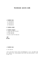 목차 1, 학교폭력의 원인 (1) 개인 관련 원인 (2) 가정 관련 요인 (3) 학교 관련 요인 (4) 사회 관련 요인 2. 학교폭력의 문제점 3. 학교폭력의 해결방안 (1) 경찰과 관련 단체의 대응 방안 (2) 학교의 대응 방안 (3) 가정의 대응 방안 (4) 청소년 스스로의 의한 해결 방안 결론 참고문헌 본문 학교폭력의 원인과 대책 타인에 대한 강한 지배욕, 피해자에 대한 낮은 공감 등을 들고 있다. 일반적으로 가해학생은 폭력과 폭력적 수단의 사용이 일반 다른 학생보다 더 적극적인 태도를 취하는가 하면 충동적 성격으로 타인을 지배하려는 강한 욕구도 그 특성의 하나라 할 수 있다. 심리학자들과 정신의학자들은 일반적으로 공격적이고 난폭한 행동을 하는 사람들의 잠재의식 속에 불안하고 불안정한 의식이 존재해 있다고 하였다. 그래서 폭력적 행동의 심리적 요인을 분석해보면 3가지로 요약해 볼 수 있다. 참고문헌 참고 문헌 학교폭력 예방과 상담 / 문용린 / 학지사 학교폭력 / 이지은 / 고시연구 2005년 5월 학교 폭력과 지역사회의 역할 / 박진규 / 한국청소년학회연구 2005년 제12권 제4호 학교폭력의 최근 동향과 문제점에 대한 고찰 / 이장현 / 한국청소년개발원 2005년 학교폭력 실태에 대한 종단적 연구 / 김준호 외 / 한국청소년개발원 2003년 제14권 제2호 학교폭력의 원인과 대책에 관한 소고 / 권오명 / 법학연구 2005년 제18집 하고 싶은 말 열심히 공부해서 결과도 좋았던 과목입니다 잘 활용하셔서 좋은 결과거두세요^^* 키워드 학교, 학교폭력, 청소년 |