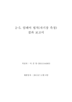 본문 2-5. 암페어 법칙(자기장 측정) 결과 보고서 작성자 : 이 건 영 (2011144083) 제출일자 : 2011년 11월 6일 5. 실험결과 1.측정값 (1) 직선도선 주위의 자기장 측정 (2) 원형도선 주위의 자기장 측정 (3)솔레노이드 중심축에서의 자기장 측정 코일상수 측정 반경(R) 길이(l) 감은 수(n/l) 17.7mm 130.5mm 22222 6. 결과분석 (1) 직선도선 주위의 자기장 측정(전류 I=5A) 자기장 이론값 실험값 오차% 10mm 1 0.9 10% 20mm 0.5 0.4 20% 30mm 0.33 0.3 9% 40mm 0.25 0.2 20% 50mm 0.2 0.2 0% (2) 원형도선 주위의 자기장 측정(전류 I=5A) 1)R=4cm 실험값B(0) 0.8 이론값B(0) 0.78 오차 2.5% 실험값B(R) 0.3 이론값B(R) 0.27 오차 11% 2)R=3cm 실험값B(0) 1.1 이론값B(0) 1.05 오차 4.8% 실험값B(R) 0.4 이론값B(R) 0.37 오차 8.1% (3)솔레노이드 중심축에서의 자기장 측정(전류 I=5A) 실험값B_ x=0 =2.4 이론값B_ x=0 =2.4 오차 0% 실험값B_ x=l/2 =1.2 이론값B_ x=l/2 =1.3 오차 7.7% 7. 토의 및 건의사항 이 실험은 암페어의 법칙을 실험을 통해서 증명하는 거였다. 직선 도선의 실험에서는 암페어의 법칙에 의해서 거리가 멀어지면 멀어질수록 자기장의 크기가 줄어든다는 것을 위의 그래프를 통해서 알 수 있었다. 그것은 아마도 자기장이 주의의 겉넓이에 반비례하기 때문인 것 같다. 또한 두 번째 실험인 원형도선에서의 실험에서는 B(x)= mu _ 0 IR ^ 2 over 2(R ^ 2 +x ^ 2 ) ^ 3/2 라는 법칙을 통해서 측정해 본 결과 원형도선에서 멀어지면 멀어질수록 자기장이 점점 줄어든다는 점을 이론값과 실험값을 비교하면서 알게 되었다. 그리고 그것은 원형도선의 지름이 4cm이건 3cm이건 마찬가지라는 사실도 알 수 있었다. 마지막 실험인 솔레노이드 실험에서는 우리가 배운 사실은 솔레노이드 내부에서의 자기장은 일정하다고 배웠는데 이는 정확한 것이 아니라는 사실을 알게 되었다. 그 이유는 아마도 자기장이 점점 끝으로 갈수록 일정하게 밀집되어 있지 않고 펴지기 때문이라고 생각한다. 그리고 이러한 사실은 이 실험에서 배운 이론을 토대로 실험을 통해서 증명할 수 있었다. 그리고 궁금했던 코일의 중앙에서 자기장센서를 반경 방향으로 급격히 움직일 때 자기장의 변화는 급격히 변하는 가였는데 급격하게 변하였다. 그 이유는 급격하게 변화하여 움직일수록 센서에 포착이 되는 자기장이 많아지기 때문이다. 하고 싶은 말 좀 더 업그레이드하여 자료를 보완하여, 과제물을 꼼꼼하게 정성을 들어 작성했습니다. 위 자료 요약정리 잘되어 있으니 잘 참고하시어 학업에 나날이 발전이 있기를 기원합니다 ^^ 구입자 분의 앞날에 항상 무궁한 발전과 행복과 행운이 깃들기를 홧팅 키워드 자기장, 오차, 측정, 실험값, 이론값, 실험값B |