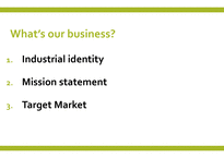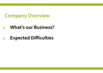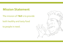 본문 Company Overview 1. What's our Business? 2. Expected Difficulties What's our business? 1. Industrial identity 2. Mission statement 3. Target Market Industrial identity a. Food service b. Healthcare Mission Statement The mission of T&B is to provide both healthy and tasty food to people in need. 키워드 사업, 제공, 건강관리, 계획서, 건강, 관리 |
