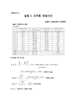 본문 <결과보고서> 실험 1. 오차론, 반응시간 실험자: 200922094 건축학부 실험 1 반응시간 측정 1 측정값 i 떨어진 거리 s _ i (cm) t _ i = sqrt 2s _ i over g (msec) 시간의 편차 d_i (msec) 편차의 제곱 d_i^2 (msec2) 1 29.2 244.11 42.33 1792 2 24.3 222.69 20.91 437 3 26.7 233.43 31,64 1002 4 17.1 186.80 -14.97 224 5 17.5 188.98 -12.80 164 6 16.1 181.26 -20.52 421 7 19.0 196.91 -4.87 23.71 8 14.4 171.42 -30.36 921 9 23.5 218.99 17.21 296 10 14.7 173.20 -28.58 817 합계 *************** 2017.83 *************** 6098 평균 *************** 201.78 *************** 2 실험값 계산 및 결과 평 균 값 = sum _ i=1 ^ N t _ i over N = sum _ i=1 ^ N sqrt 2s _ i over g over N TIMES 1000 (1000을 곱해주는 이유는 시간단위 환산) (g=980cm/s2) = 244.11+222.69+233.43+ .+173.20 over 10 ≒ 201.78 msec 표준편차 = sqrt sum _ i=1 ^ N d _ i ^ 2 over N-1 = sqrt 1792+437+1002+ .+817 over 10-1 ≒ 26.03 msec 표준오차 = sqrt sum _ i=1 ^ N d _ i ^ 2 over N(N-1) = 26.03 over sqrt 10 ≒ 8.23 msec 반응시간 = 201.78 ± 26.03 msec 하고 싶은 말 좀 더 업그레이드하여 자료를 보완하여, 과제물을 꼼꼼하게 정성을 들어 작성했습니다. 위 자료 요약정리 잘되어 있으니 잘 참고하시어 학업에 나날이 발전이 있기를 기원합니다 ^^ 구입자 분의 앞날에 항상 무궁한 발전과 행복과 행운이 깃들기를 홧팅 키워드 시간, 반응, 실험, 편차, 반응시간, 결과 |