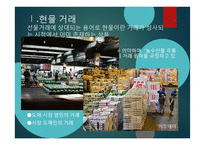 목차 1. 현물거래 ? 도매시장 거래 및 도매시장 외 거래 2. 선물거래 ? 개념 , 발전, 기능 및 우리나라 농산물 선도 거래와 선물거래 3. 전자상거래 ? 개념과 유형 / 농산물 전자 상거래 4. 공동 판매 ? 의의, 원칙, 유형 / 우리나라의 농산물 공동 판매 본문 1)공동 판매의 의의 ●생산자의 거래 교섭력 증가 ●유통 비용 절감 ●효율적인 수급 조절 ●공동 투자를 통한 유통 구조 및 시설 확보 ●공동 판매는 개별 농가의 소득을 안정시킬 수 있다. 하고 싶은 말 농산물 거래와 공동 판매 PPT(현물거래, 선물거래, 전자상거래, 공동판매)프레젠테이션 키워드 농산물거래, 농산물공동판매, 현물거래, 전자상거래, 공동판매 |