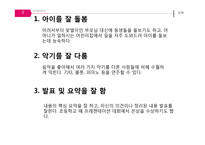 본문 1. 아이를 잘 돌봄 어려서부터 맞벌이인 부모님 대신에 동생들을 돌보기도 하고, 어머니가 일하시는 어린이집에서 일을 자주 도와드려 아이를 돌보는데 능숙하다. 2. 악기를 잘 다룸 음악을 좋아해서 여러 가지 악기를 다른 사람들에 비해 수월하게 익힌다. 기타, 플룻, 피아노 등을 연주할 수 있다. 3. 발표 및 요약을 잘 함 내용의 핵심 요약을 잘 하고, 자신의 의견이나 정리된 내용 발표를 잘한다. 초등학교 때 프레젠테이션 대회에서 은상을 수상하기도 했다. 하고 싶은 말 나의장점20가지(자기소개PPT, 자기소개프레젠테이션, 자기소개, 나의장점) 키워드 나의장점, 자기소개, 자기소개프레젠테이션, 자기소개서, 나의장점 |