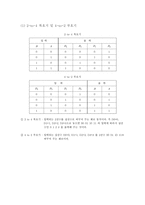 본문 (1) 2-to-4 복호기 및 4-to-2 부호기 2-to-4 복호기 입 력 출 력 B A D _ 3 D _ 2 D _ 1 D _ 0 0 0 0 0 0 1 0 1 0 0 1 0 1 0 0 1 0 0 1 1 1 0 0 0 4-to-2 부호기 입 력 출 력 D _ 3 D _ 2 D _ 1 D _ 0 B A 0 0 0 1 0 0 0 0 1 0 0 1 0 1 0 0 1 0 1 0 0 0 1 1 ① 2 to 4 복호기 : 입력되는 2진수를 십진수로 바꾸어 주는 회로 동작이다. 즉 D0=0, D1=1, D2=2, D3=3으로 놓으면 00 01 10 11 의 입력에 따라서 십진 수인 0 1 2 3 을 출력해 주는 것이다. ② 4 to 2 부호기 : 입력되는 십진수 D0=0, D1=1, D2=2, D3=3 를 2진수 00 01 10 11로 바꾸어 주는 회로이다. (2)binary-to-BCD 부호기 입 력 출 력 D C B A 10 자리 1 자리 0 0 0 0 0 0 0 0 0 1 0 1 0 0 1 0 0 2 0 0 1 1 0 3 0 1 0 0 0 4 0 1 0 1 0 5 0 1 1 0 0 6 0 1 1 1 0 7 1 0 0 0 0 8 1 0 0 1 0 9 1 0 1 0 1 0 1 0 1 1 1 1 1 1 0 0 1 2 1 1 0 1 1 3 1 1 1 0 1 4 1 1 1 1 1 5 10자리의 출력과 1자리의 출력 모두 예상했던 결과값과 부합했다. 00부터 15까지 하나씩 증가하는 결과값이 나왔다. 하고 싶은 말 좀 더 업그레이드하여 자료를 보완하여, 과제물을 꼼꼼하게 정성을 들어 작성했습니다. 위 자료 요약정리 잘되어 있으니 잘 참고하시어 학업에 나날이 발전이 있기를 기원합니다 ^^ 구입자 분의 앞날에 항상 무궁한 발전과 행복과 행운이 깃들기를 홧팅 키워드 자리, 결과값, 진수, 출력, 회로, 결과 |